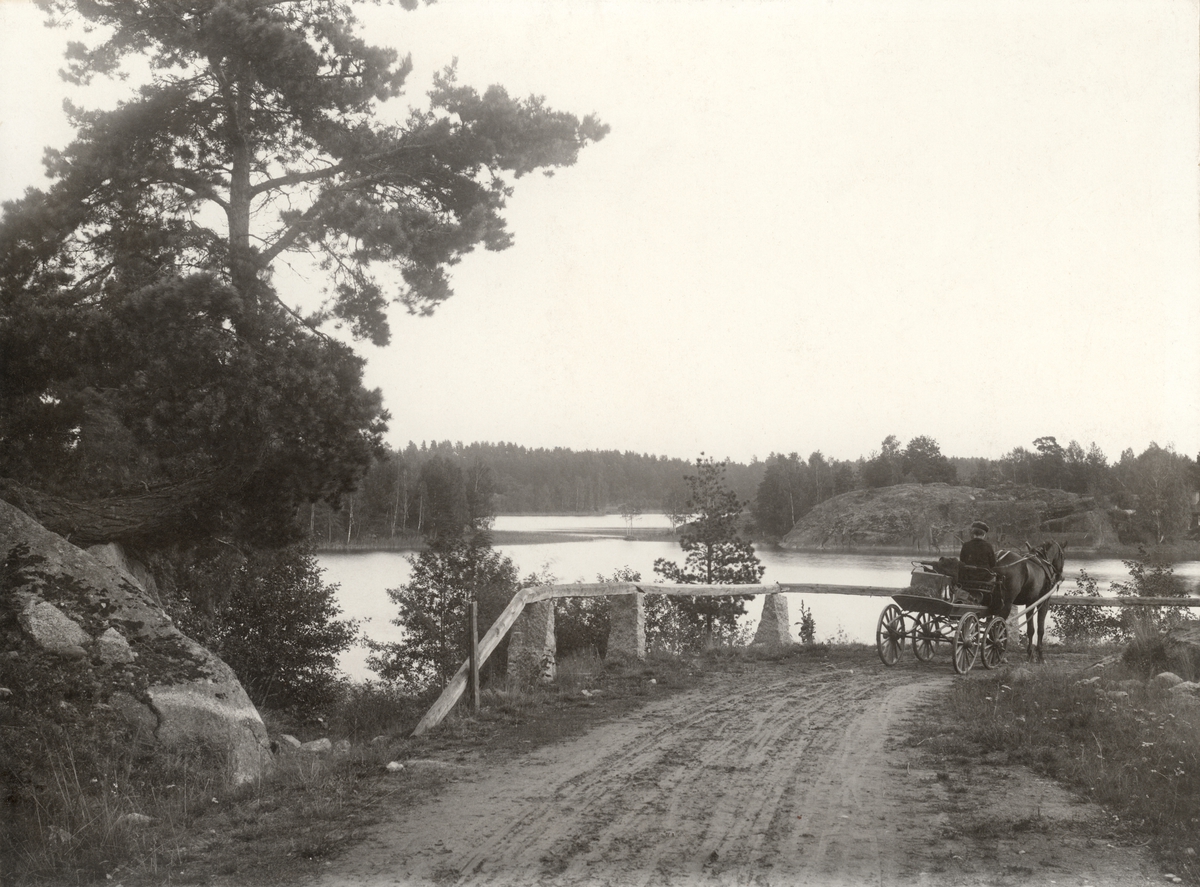 Hjuldon för åktransport. Östergötland. Kinda hd. Vårdnäs sn. Brokind. "Landsvägsmotiv nära Brokinds station."