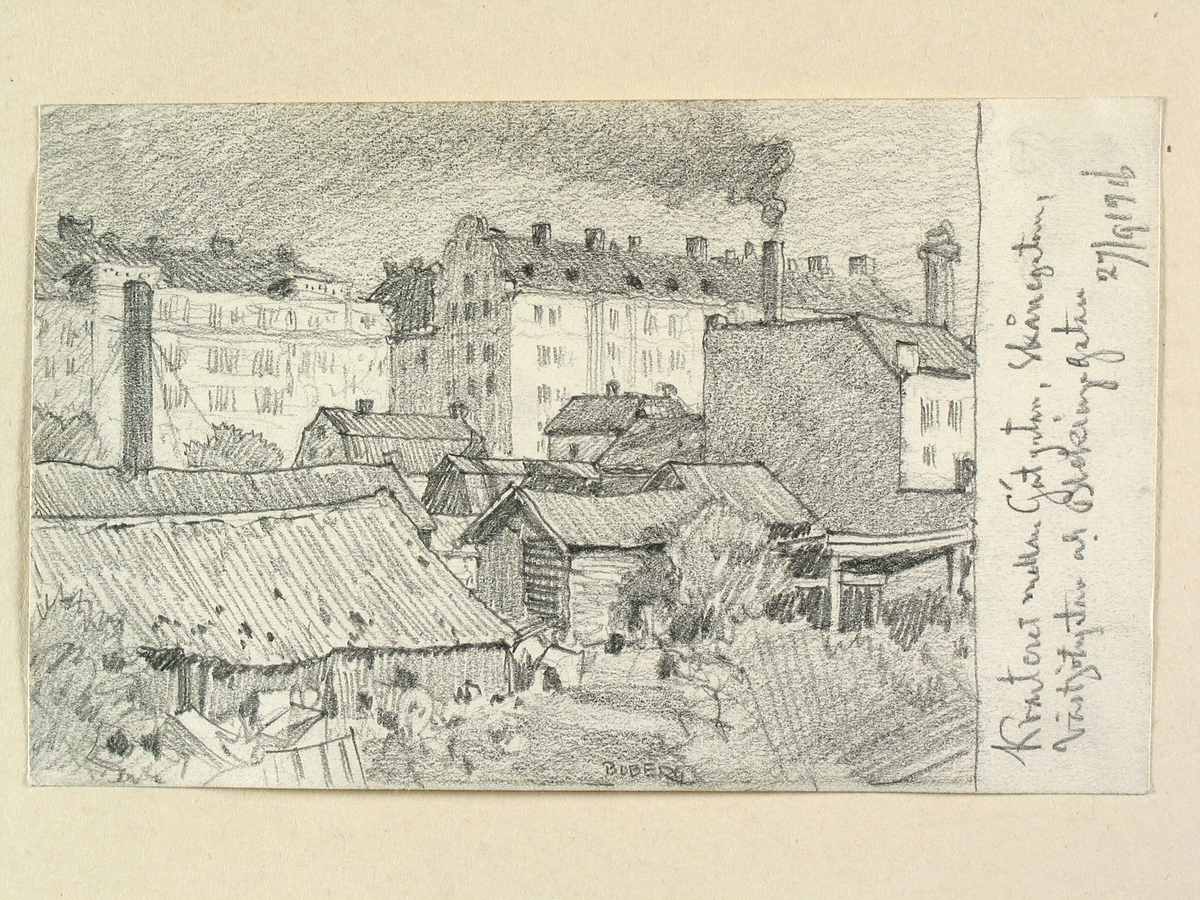 Teckning av Ferdinand Boberg. Stockholm, Söder, Kv. ?Planet (7761)?, , ,