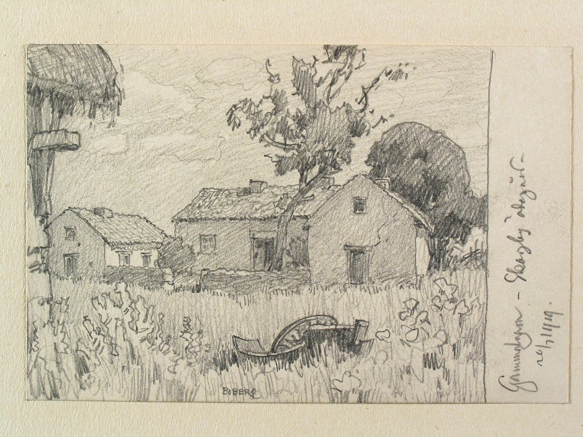 Gotland, Gammelgarns sn. "Skogby ödegård". Teckning av Ferdinand Boberg