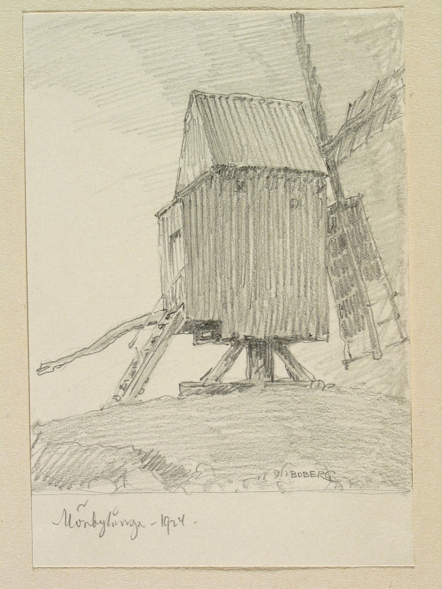 Öland, Algutsrums hd., Mörbylånga. Väderkvarn. Teckning av Ferdinand Boberg.