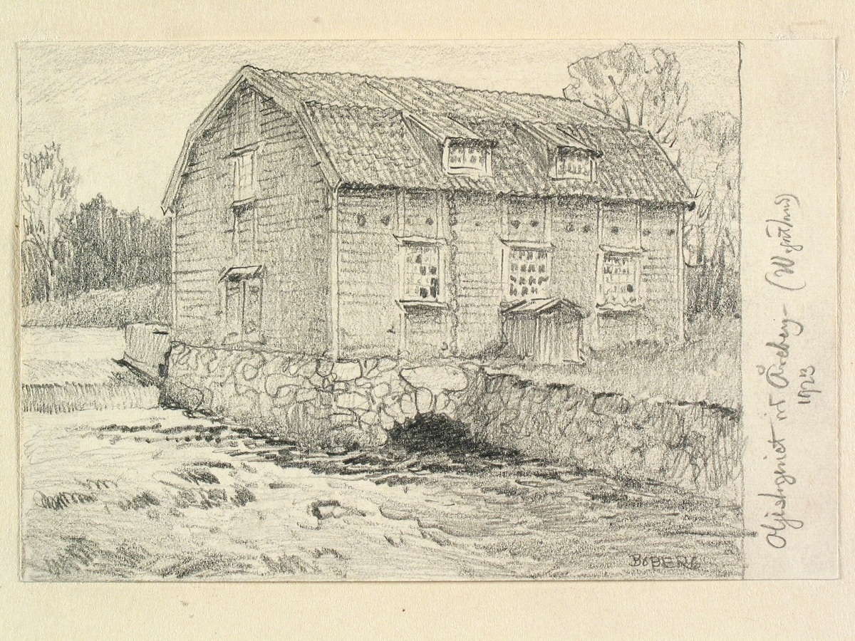 Teckning av Ferdinand Boberg. Västergötland, Kåkinds hd., Kyrkefalla sn., Åreberg