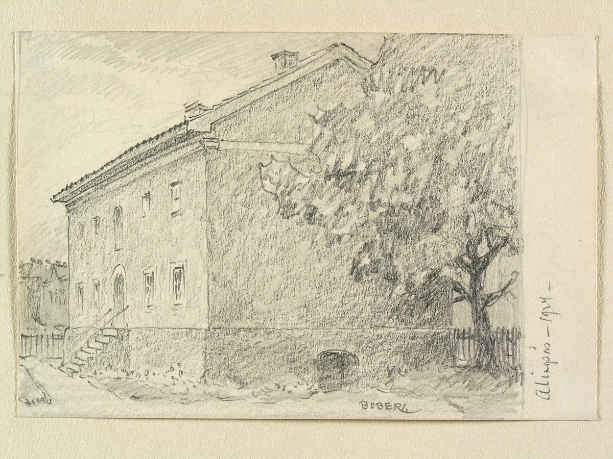 Teckning av Ferdinand Boberg. Alingsås, Alströmers hus