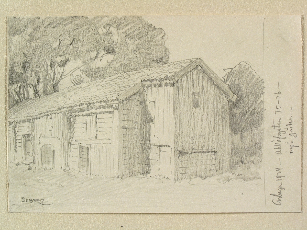 Teckning av Ferdinand Boberg. Arboga, Ahllöfsgatan 75-76