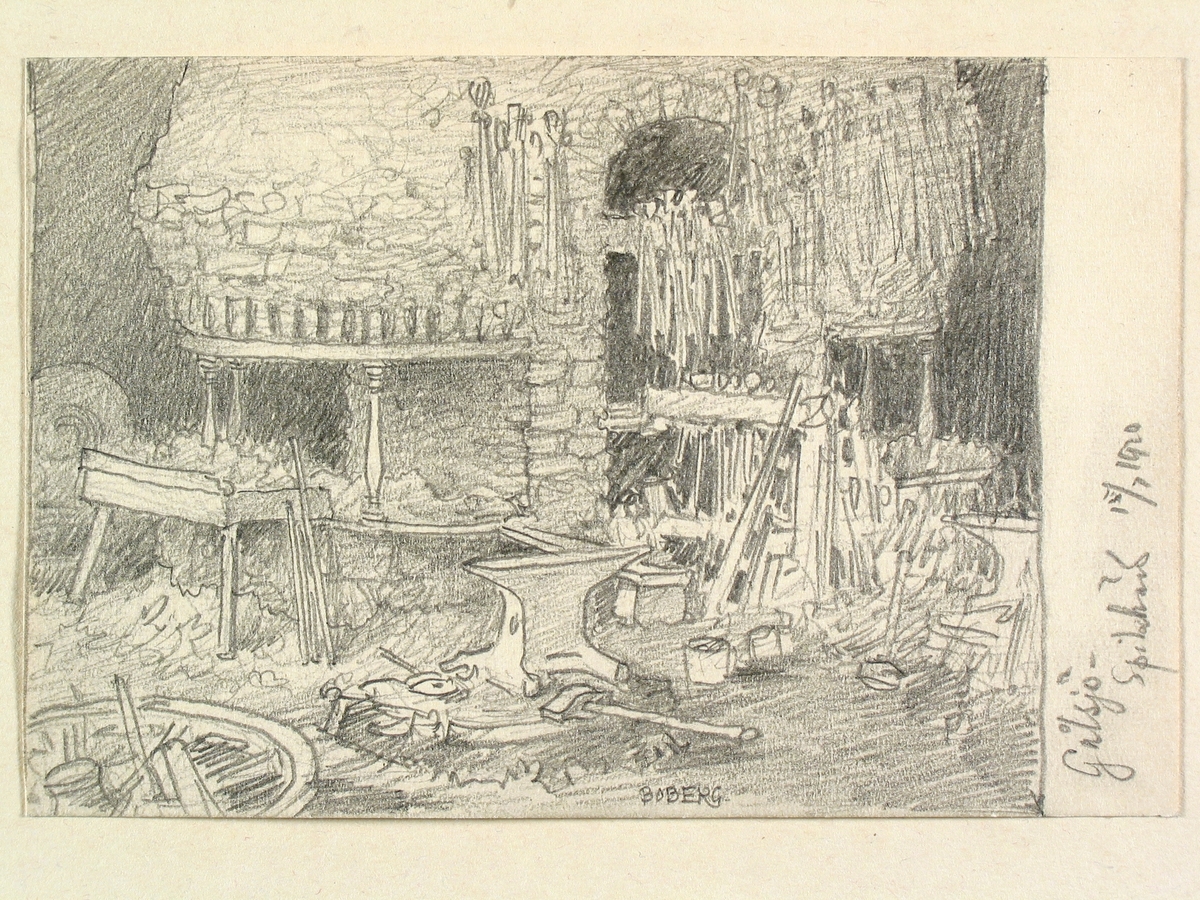 Teckning av Ferdinand Boberg. Ångermanland, Boteå sn. , Gålsjö