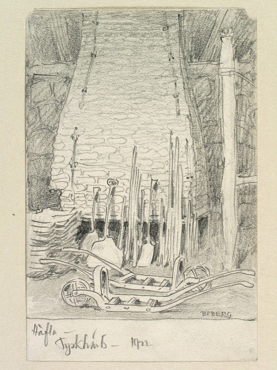 Teckning av Ferdinand Boberg. Östergötland, Finspångaläns hd., Skedevi sn., Hävla