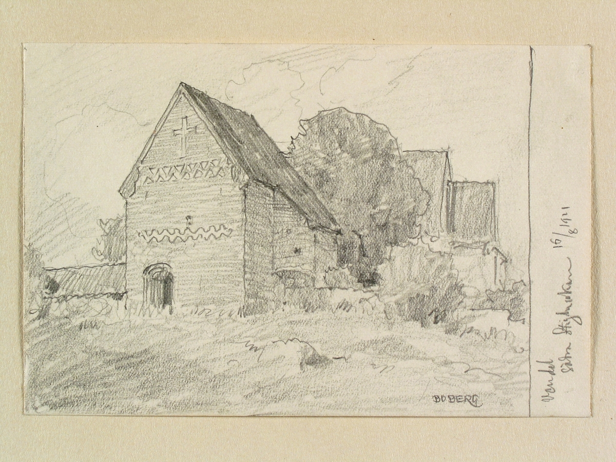 Teckning av Ferdinand Boberg. Uppland, Örbyhus hd., Vendels kyrka, Södra stigluckan