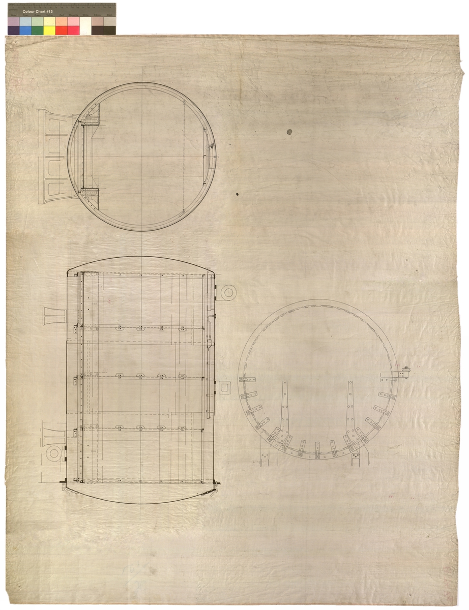 Installationsritning. Ångpanna. 85x108 cm.Tusch. Linjalritning. Osignerad.