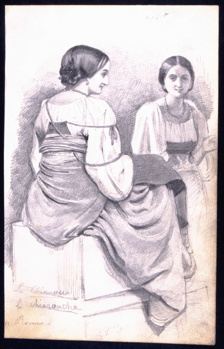 La Ciaruccia, Rom. Kvinna sedd bakifrån resp framifrån. Blyertsteckning av Fritz von Dardel.
