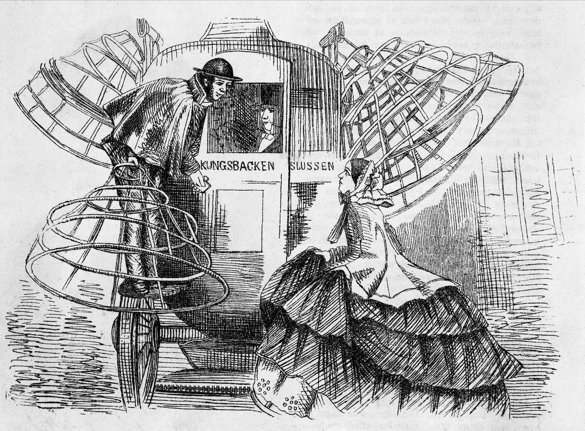 Krinolinställ bundna på vagn. Repro ur Illustrerad Tidning nr. 41, 1858.