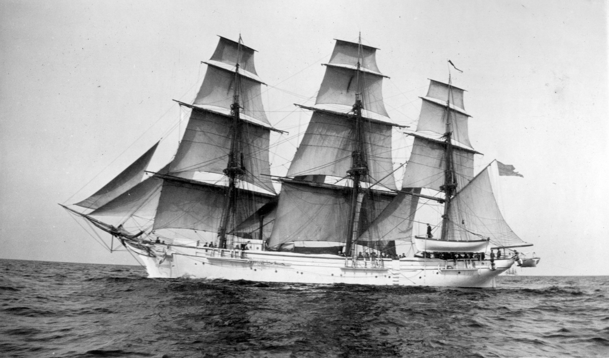 Titel: Fartyget Najaden till sjöss i all sin prakt med fulla segel.