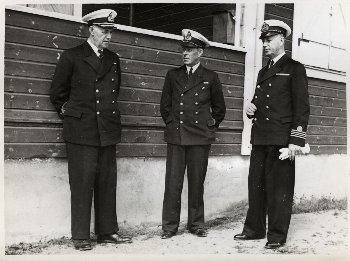 Titel: Bilden visar viceamiral Fabian Tamm i samtal med två officerskollegor.