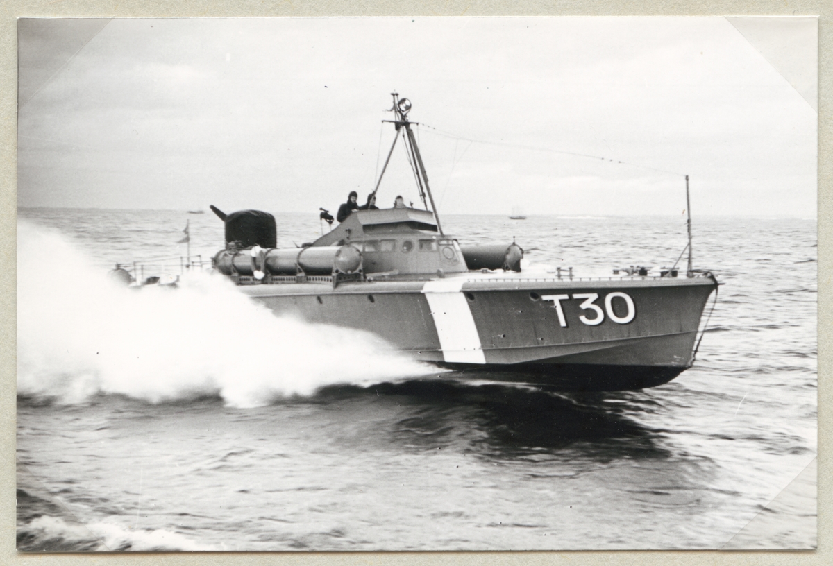 Titel: Motortorpedbåten T 30 under provtur. 1943