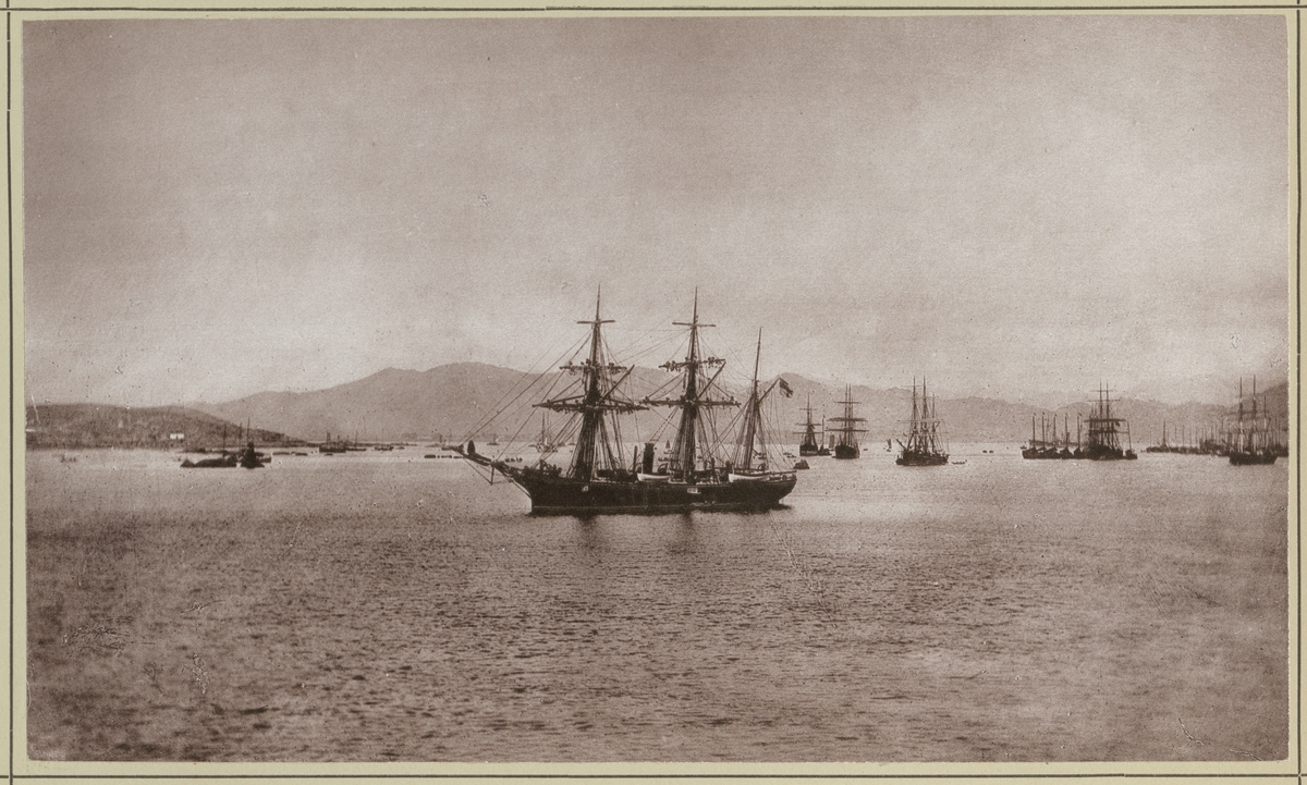 Bilden visar den tyska kanonbåten SMS Wolf som ankrar på redden i Xiamen, tidigare Amoy.