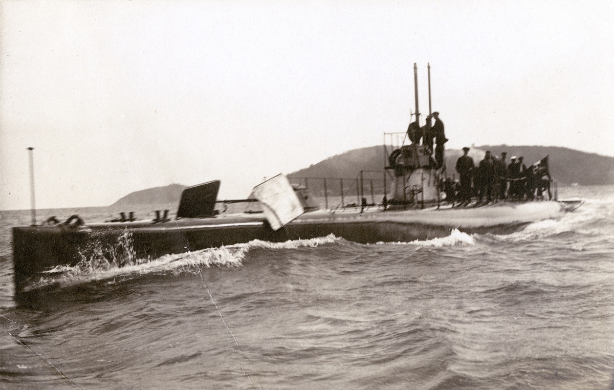 Ubåten HVALEN under en provfärd utanför La Spezia, Italien.