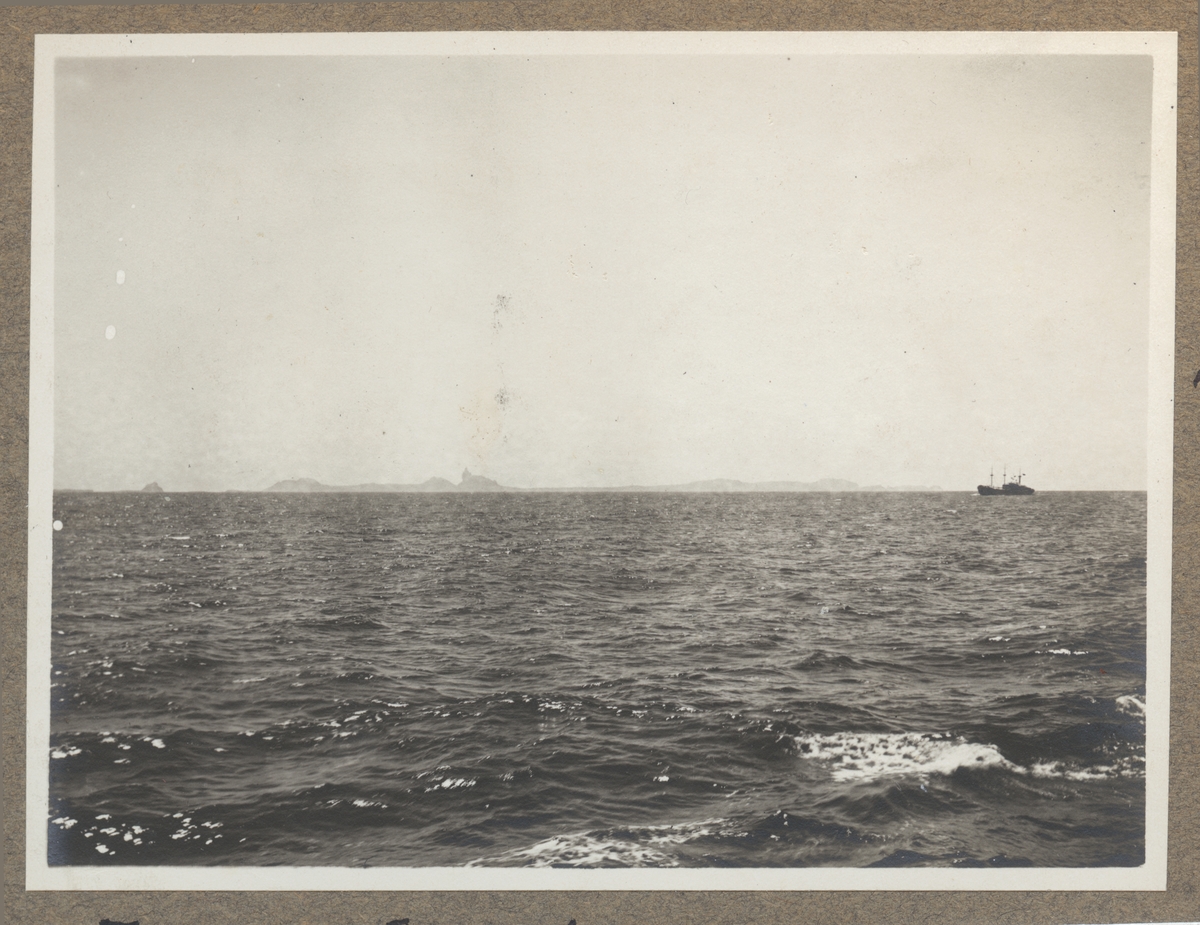 Titel: Bilden visar lastfartyget Kronprinsessan Margareta till havs. På horisonten syns en ögrupp.