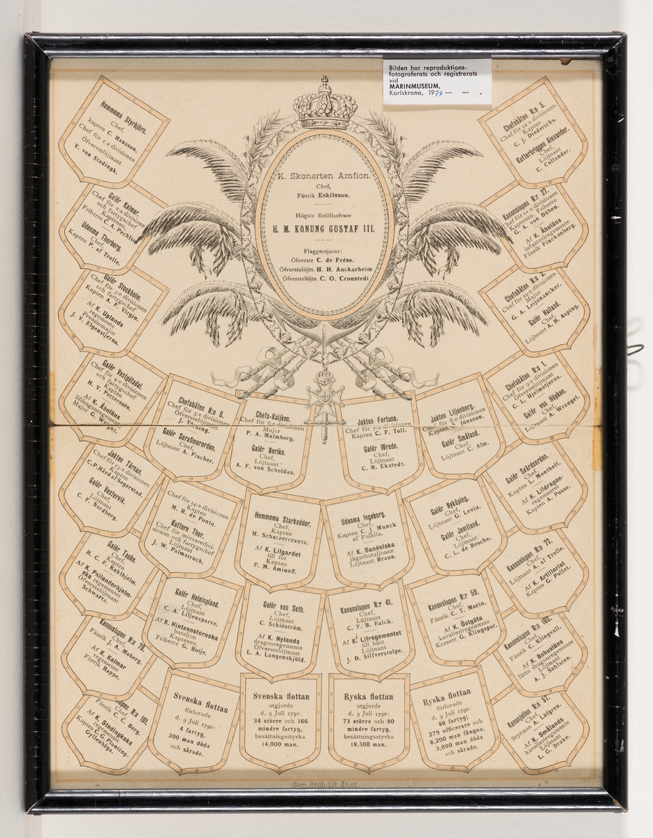 "Program för minnesfesten å Kongl Skeppsholmen den 9 Juli 1890 till firande af etthundrade årsdagen af Sjöslaget vid Svensksund medelst aftäckande af en öfver slaget upprest minnessten."