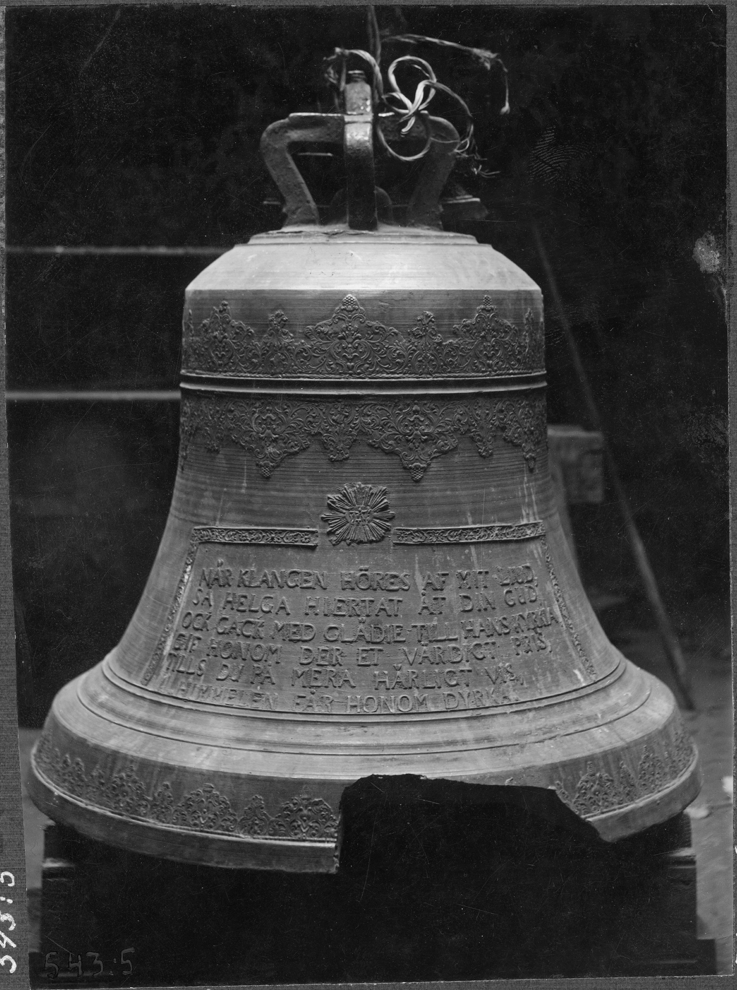 Beskrivning: Lillklockan, 516 kg, 1750, omgjuten 1767, av Erik Hillström, samt 1922.