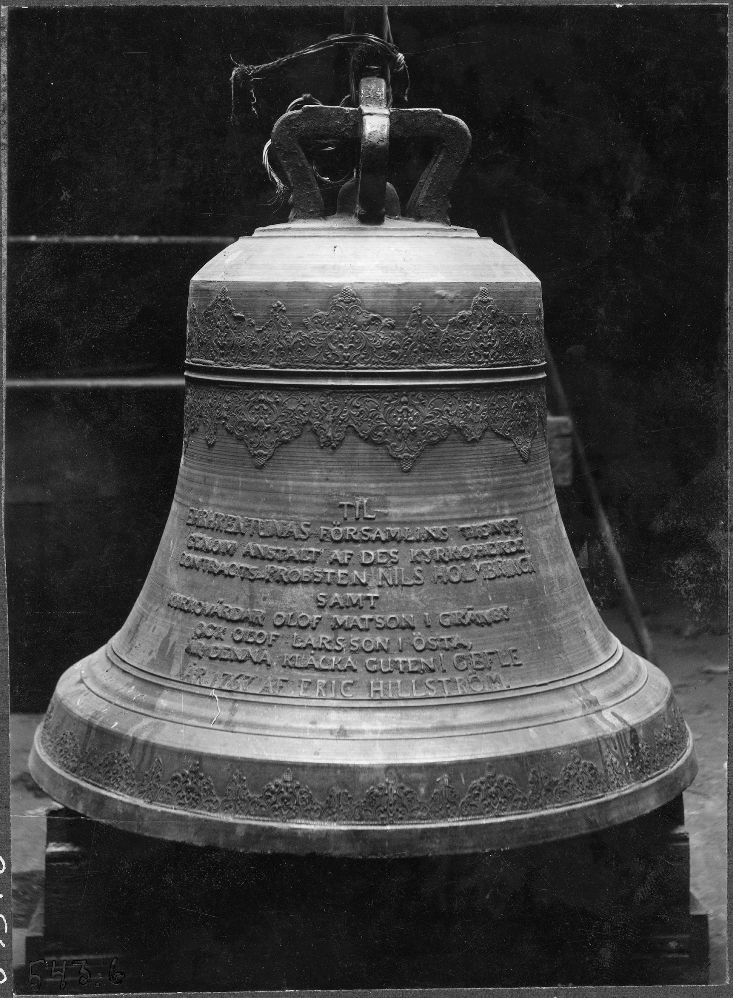 Beskrivning: Lillklockan, 516 kg, 1750, omgjuten 1767, av Erik Hillström, samt 1922.