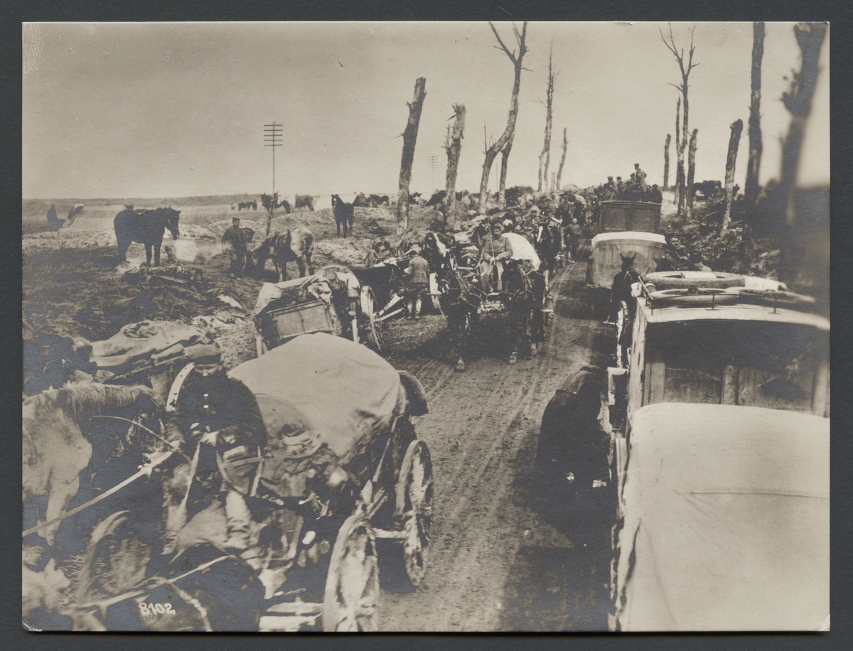 Originaltext: "Tysk trängkolonntrafik i Somme-avsnittet."