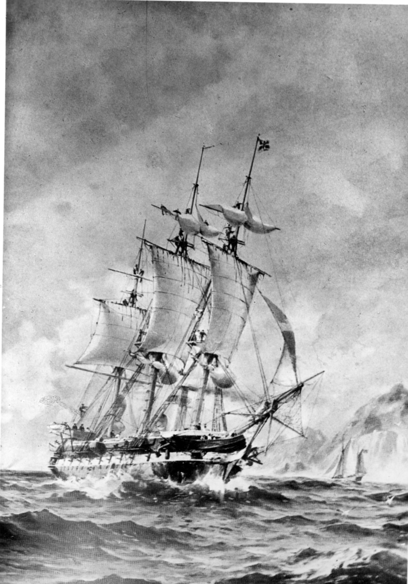 Fregatten Eugenie till segels, målning av Hägg. Reproduktion