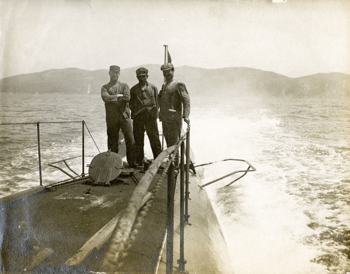 Titel: Personal från varvet Fiat-San Giorgio i La Spezia tar en provtur med ubåten HVALEN.