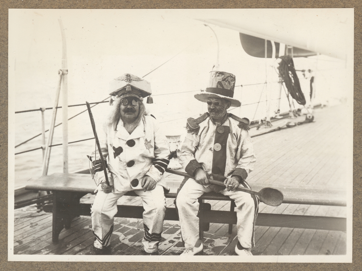 Titel: Bilden visar två utklädda sjömän som igår i Neptuns svit under linjedopet ombord på Fylgia.