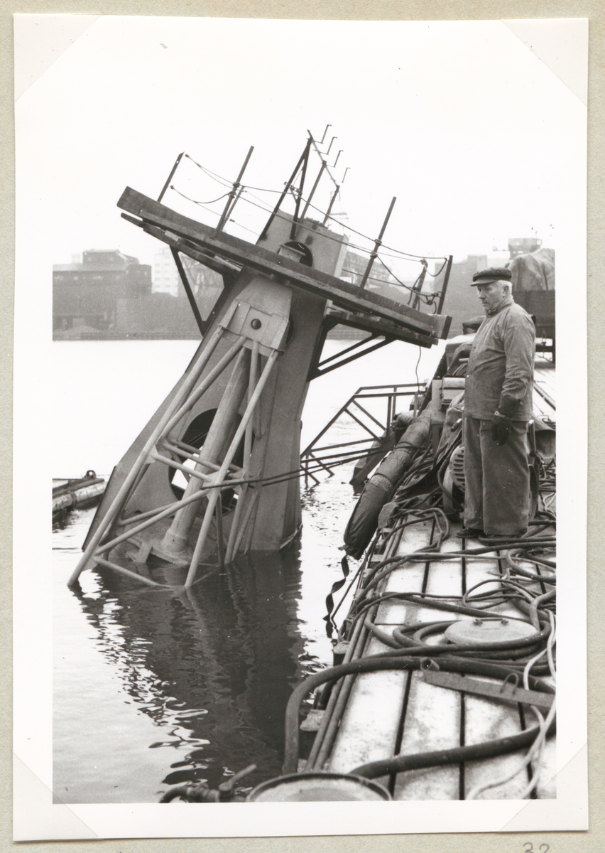 Samma dag då Bävern sjösattes. sjönk Illern vid slipbron. Dagen efter betraktar grovarbetaren Johan Andersson förödelsen med tydlig medkänsla.