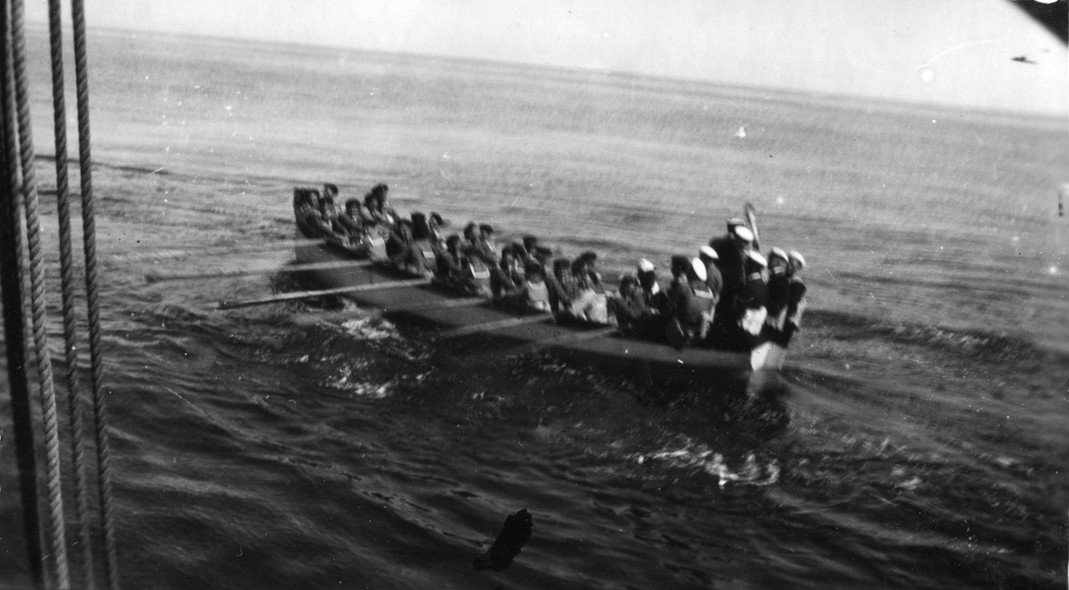 Titel: Jarramas besättning i livbåtsmanöver.