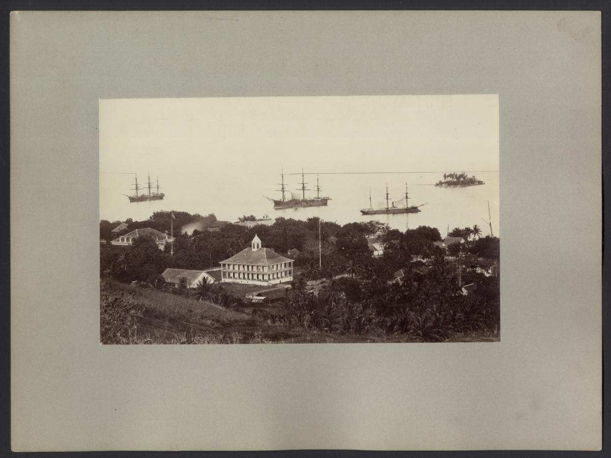 Bilden föreställer en vy över Tahitis huvudstad Papeete. I förgrunden syns palatset av konung Pomares. I bakgrunden framför kusten ligger flera örlogsfartyg. Bland dem är dock inte Vanadis. Bilden kan inte knytas till Oscar Ekholm som fotograf, förmodligen är den inköpt från Rudolf Nissen under resan.