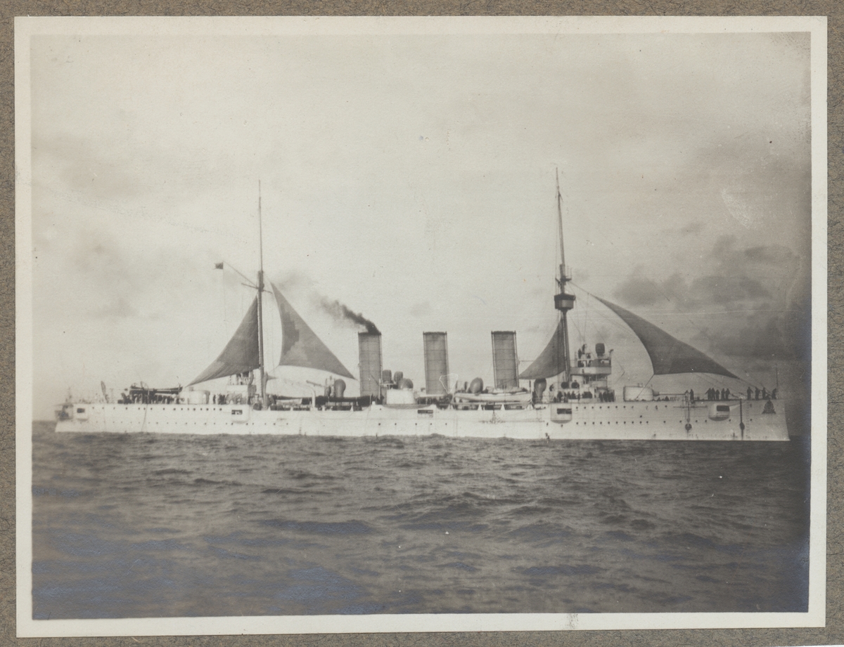 Titel: Bilden visar pansarkryssaren Fylgia till havs.