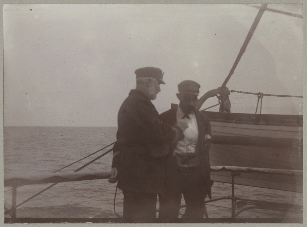 Titel: Bilden visar två sjömän i samtal med varandra ombord på Balder.