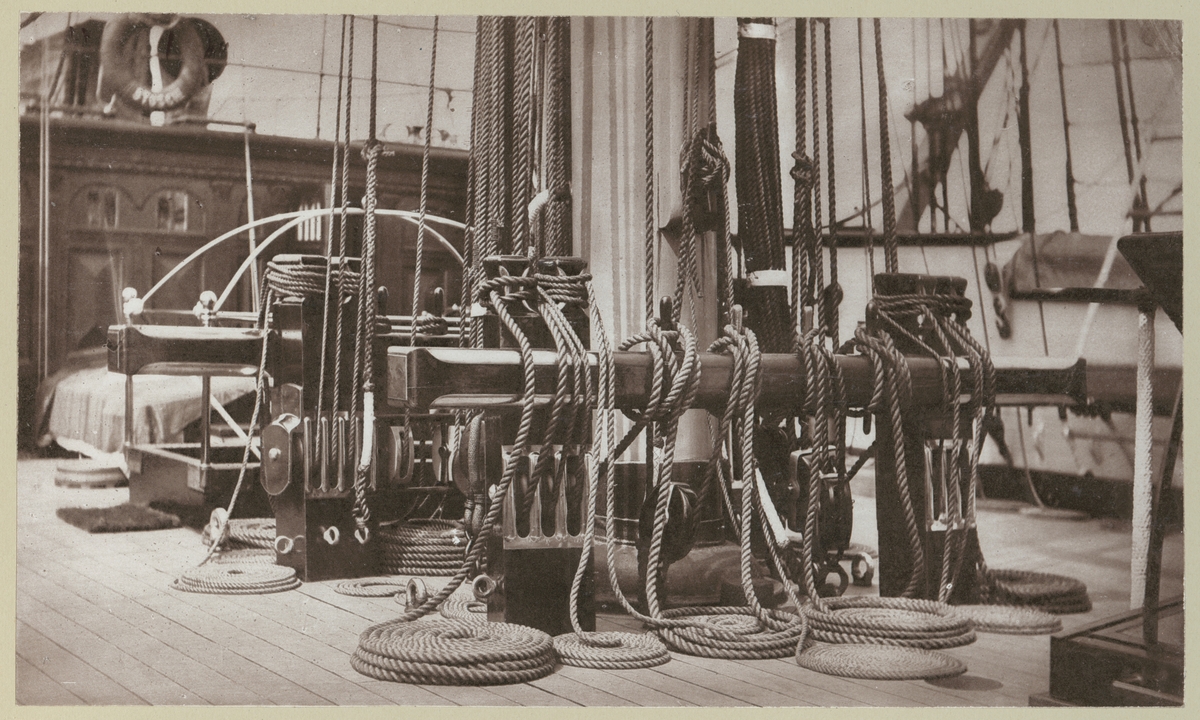 Bilden visar nagelbänken vid kryssmast på korvetten Stosch.