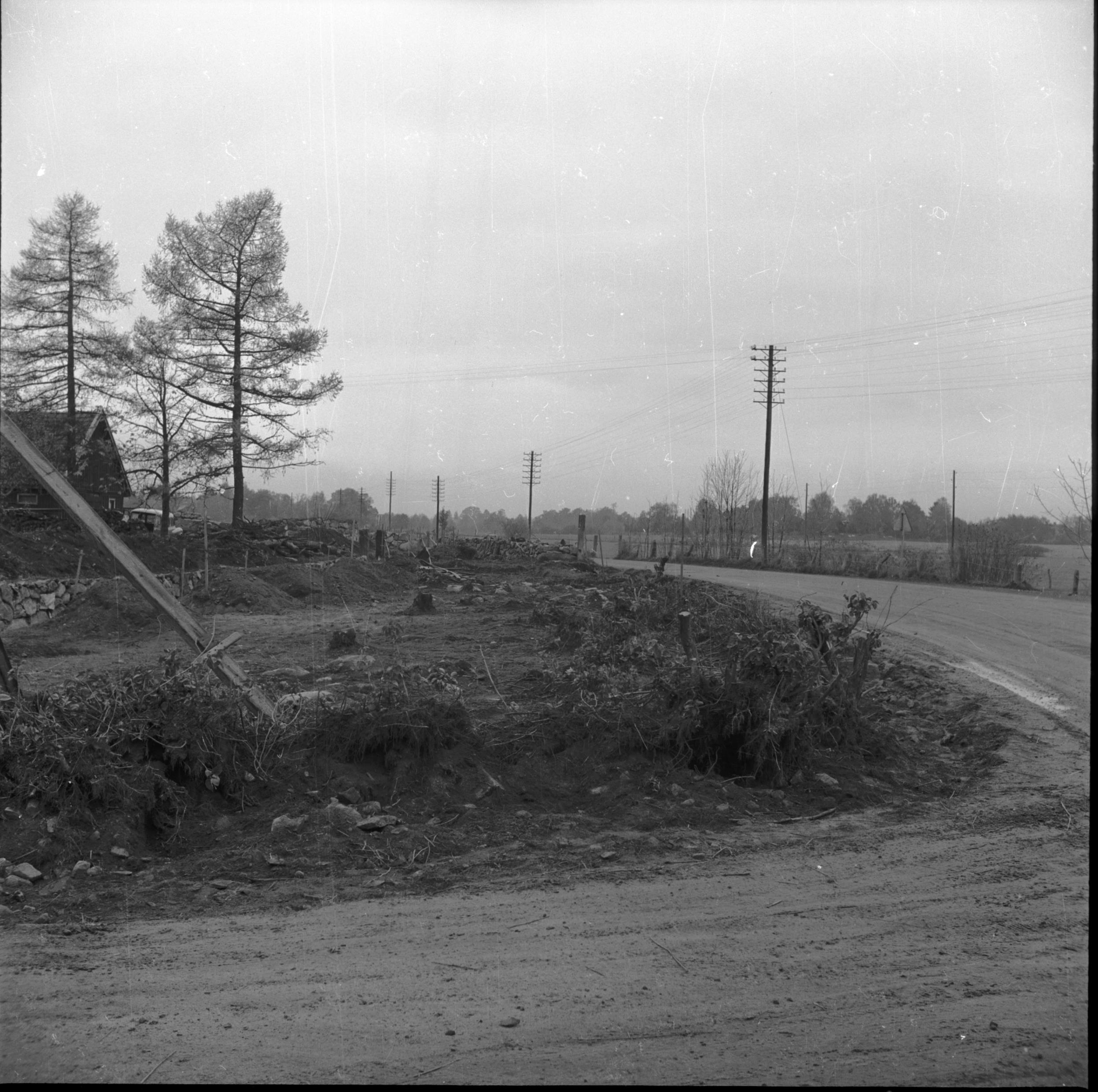 Vägarbetena från syd-syd-öst. I bakgrundens mitt den stenmur som skulle flyttas.