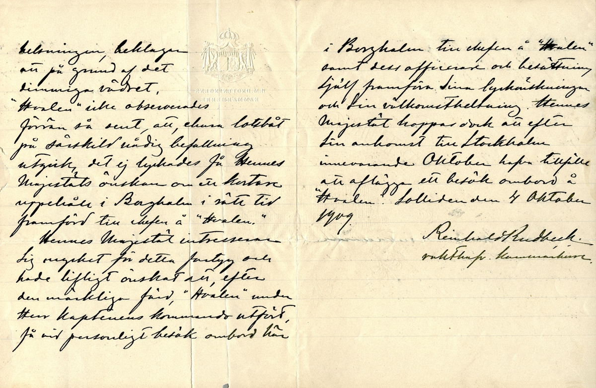 Titel: Tackbrev från Drottning Sofia till kapten Magnusson på ubåten HVALEN. (fortsättning av brevet :142)