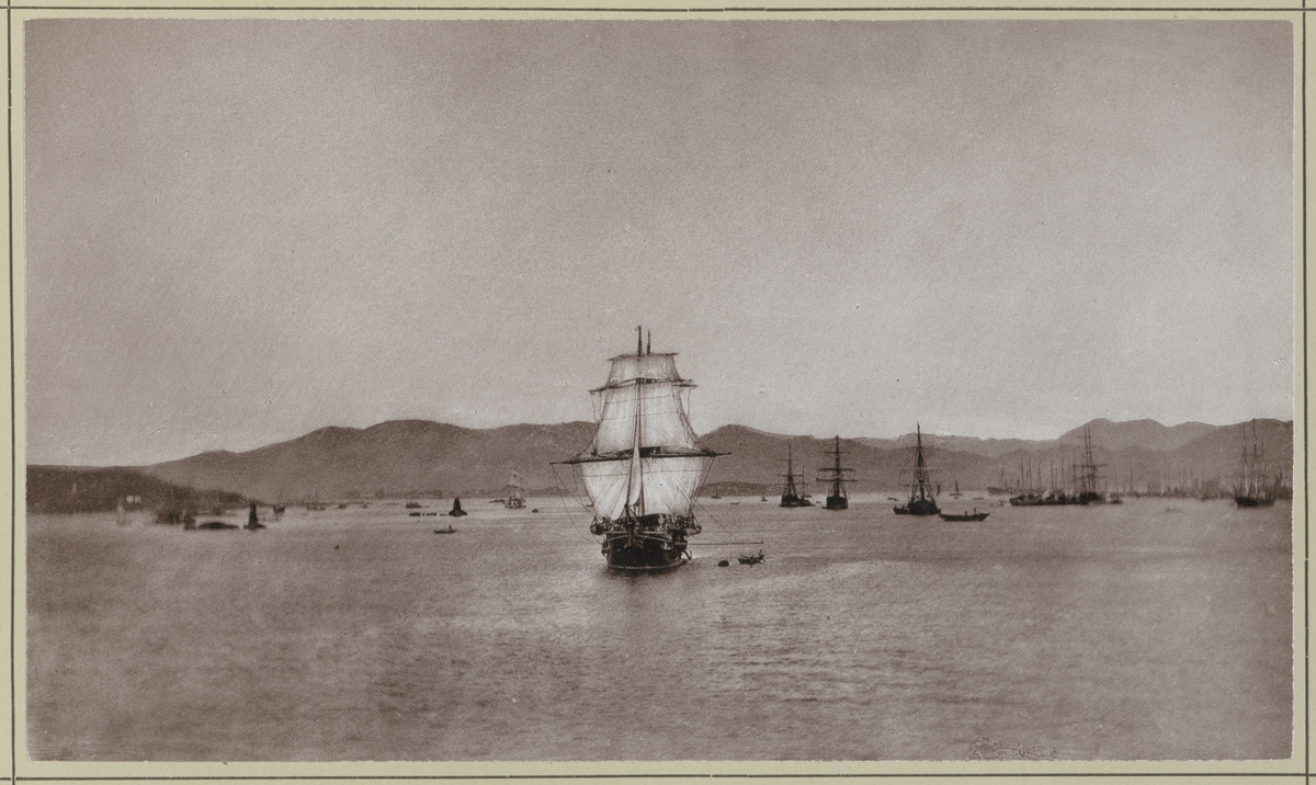 Bilden visar handelsfartyg som ligger på redden i Xiamen, tidigare Amoy.