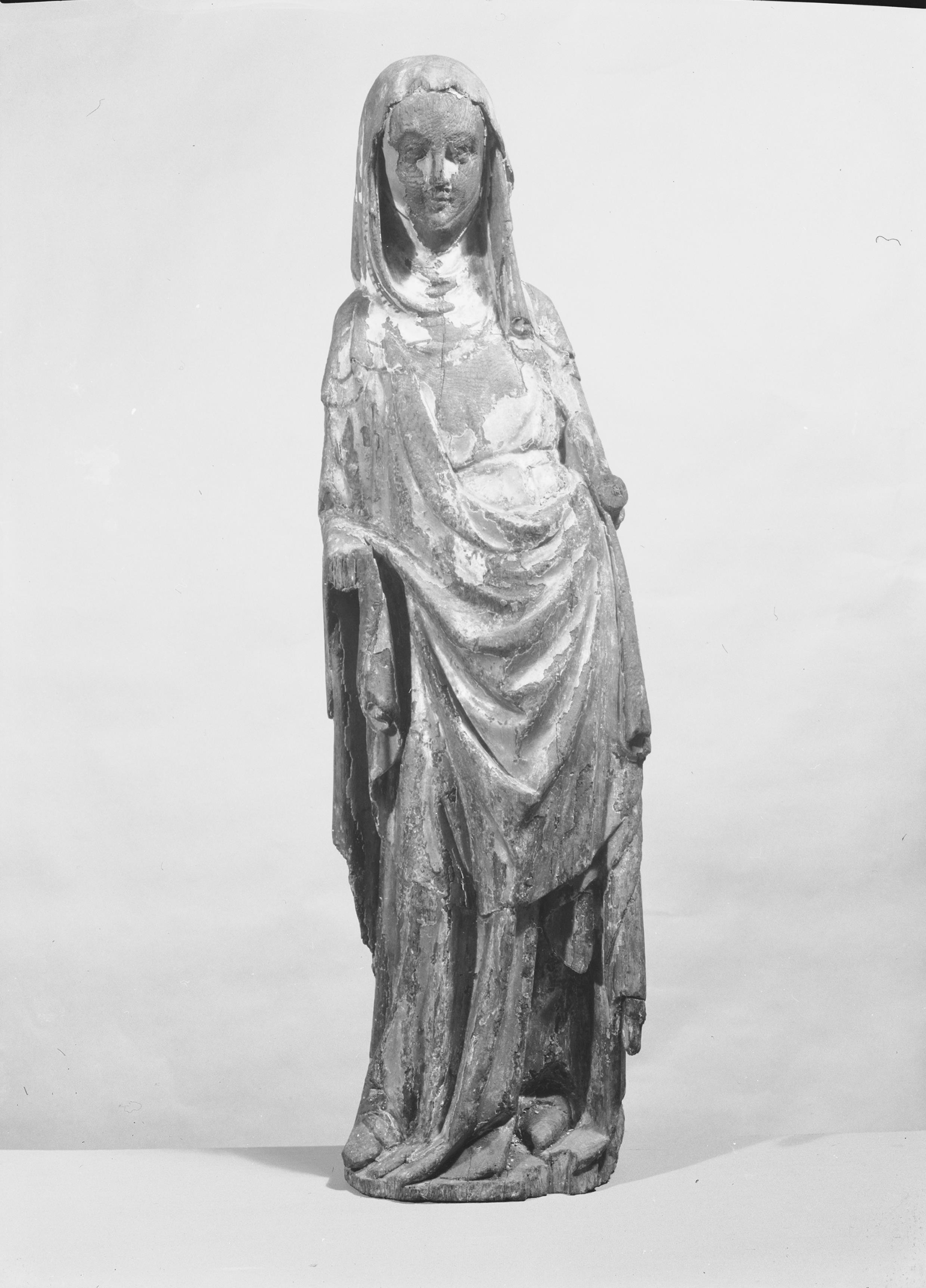 Skulptur, trä, kvinnligt helgon, 1300-talets förra hälft.