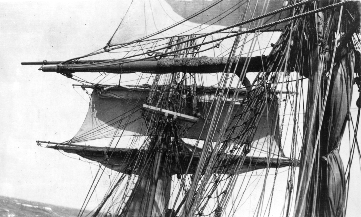 Titel: Detaljfoto på segel och mast och tågvirke ombord på Najaden.