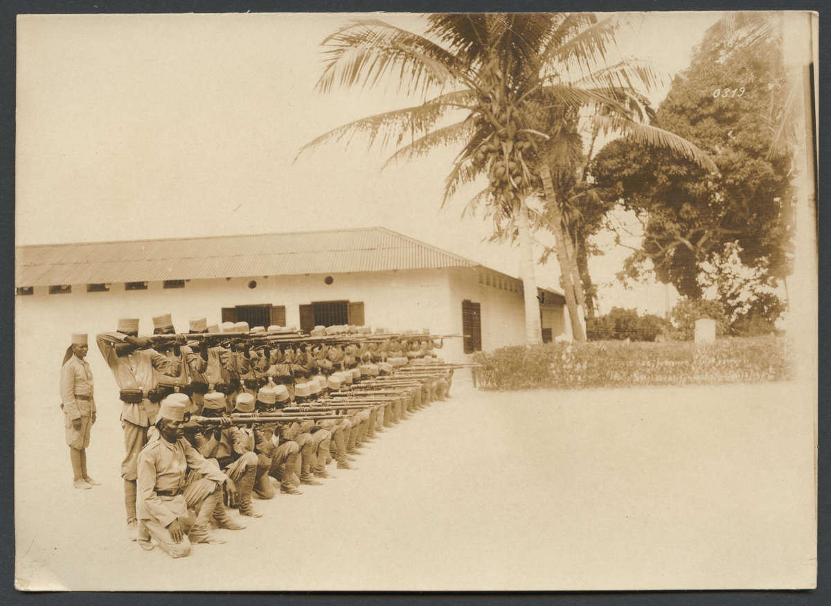 Titel: Bilden visar afrikanska soldater under skjututbildning.