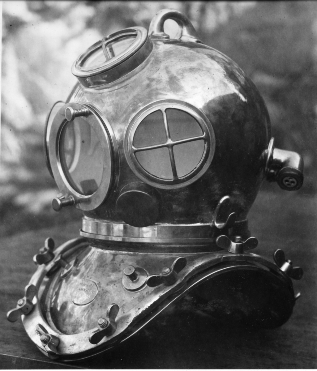 Titel: Bilden visar en tungdykarhjälm av typ "Karlskronahjälm".