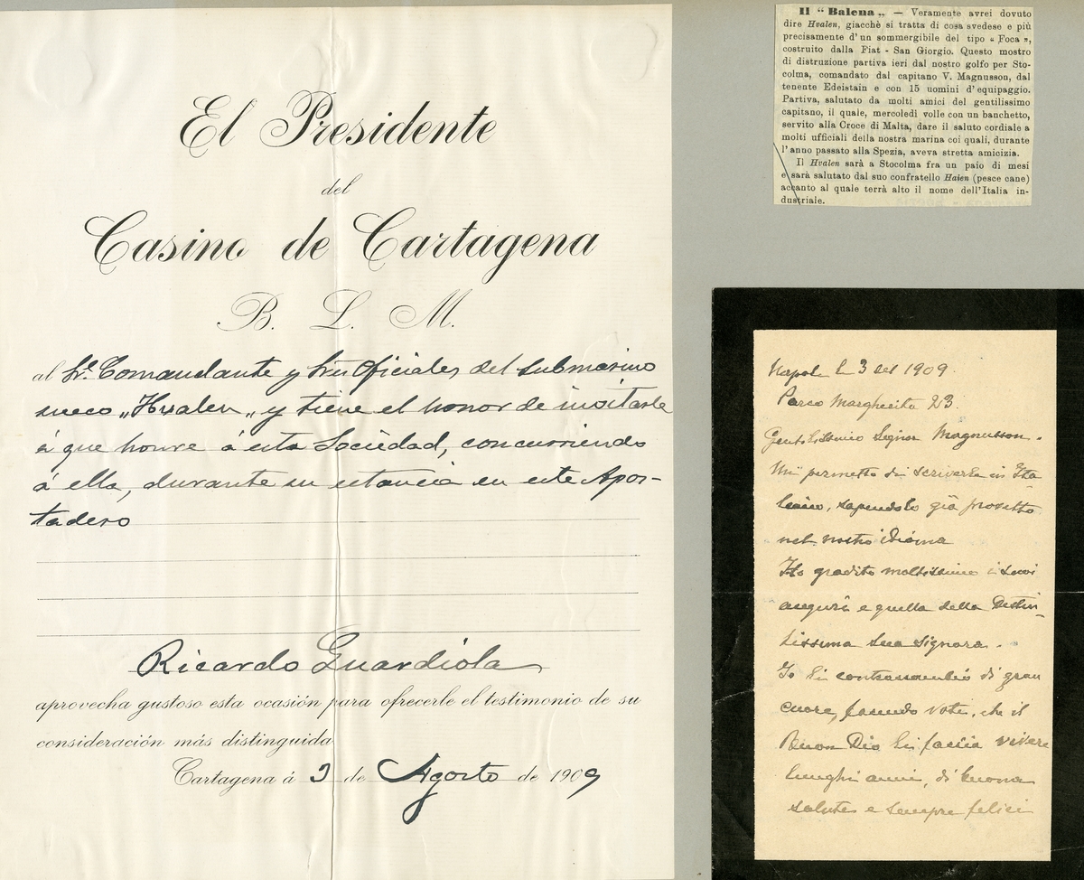 Middagsinbjudan till officerarna på ubåten HVALEN från direktören för casinot i Cartagena, Spanien.