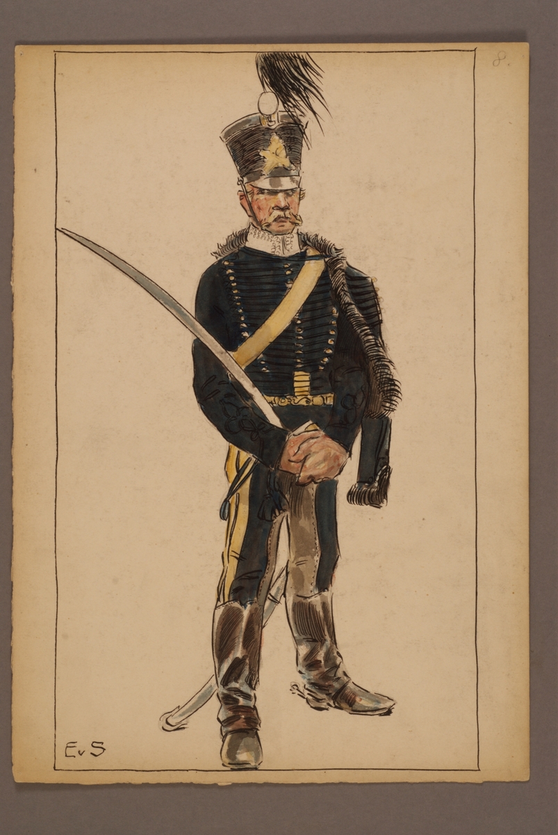 Plansch med uniform för Wendes artilleriregemente, ritad av Einar von Strokirch.