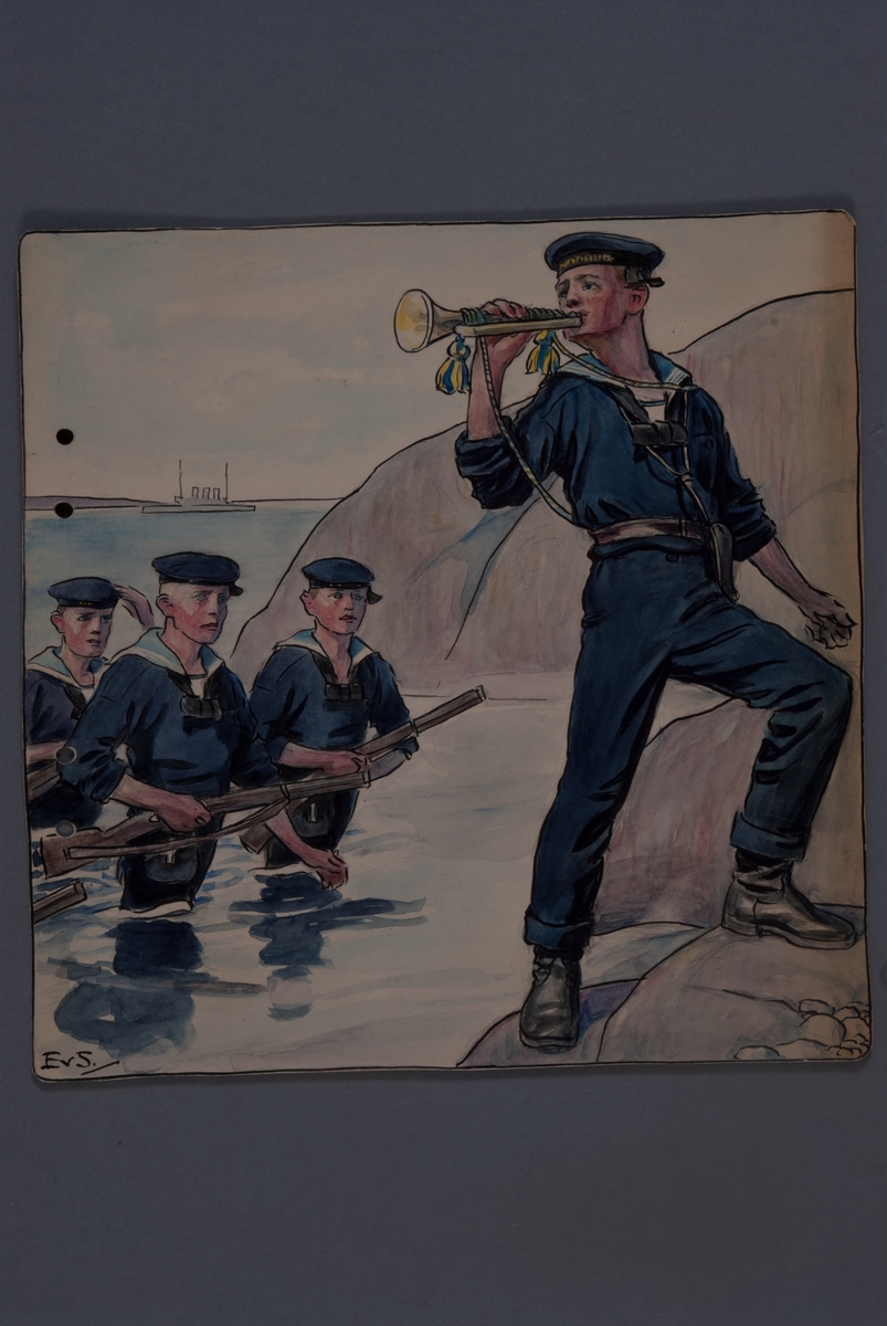 Titel: Uniformsteckning i original av Einar von Strokirch, med flottans mundering.