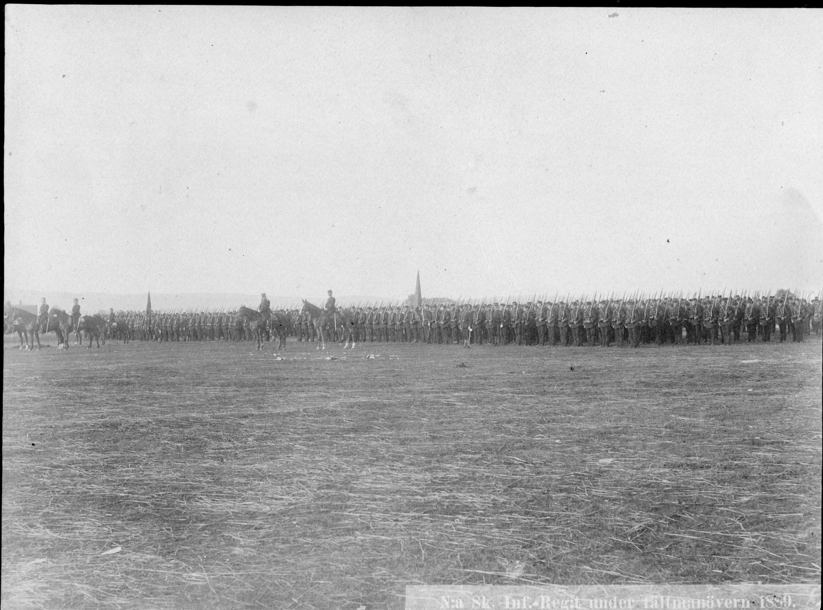 Norra Skånska regementet I 24 uppställt på Kvidinge hed under fältmanövern 1889.