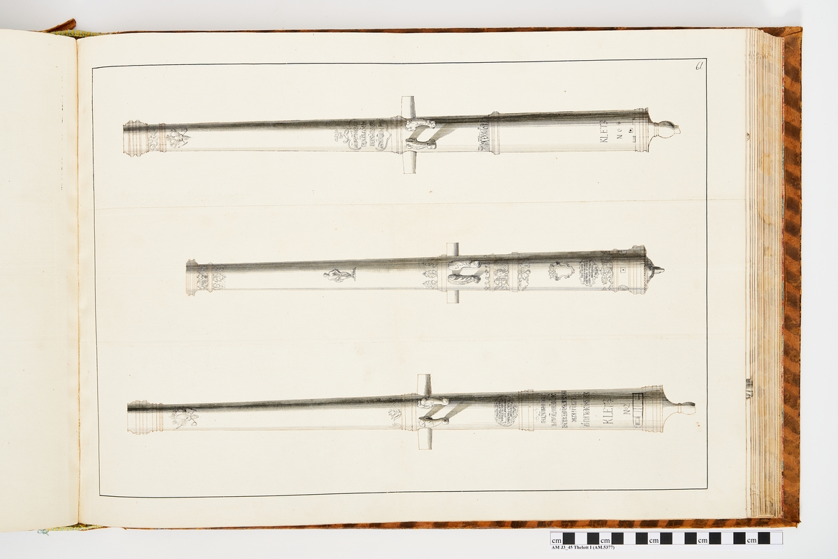 Avbildning föreställande eldrör tagna som troféer av den svenska armén vid Klets 1700. Ingår i volym med avbildade kanontroféer tagna åren 1700-1702.