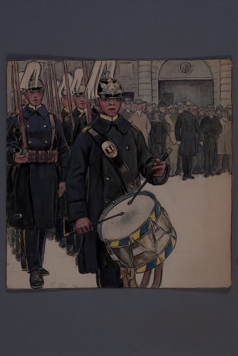På väg mot högvaktsavlösning, teckning av Einar von Strokrich.