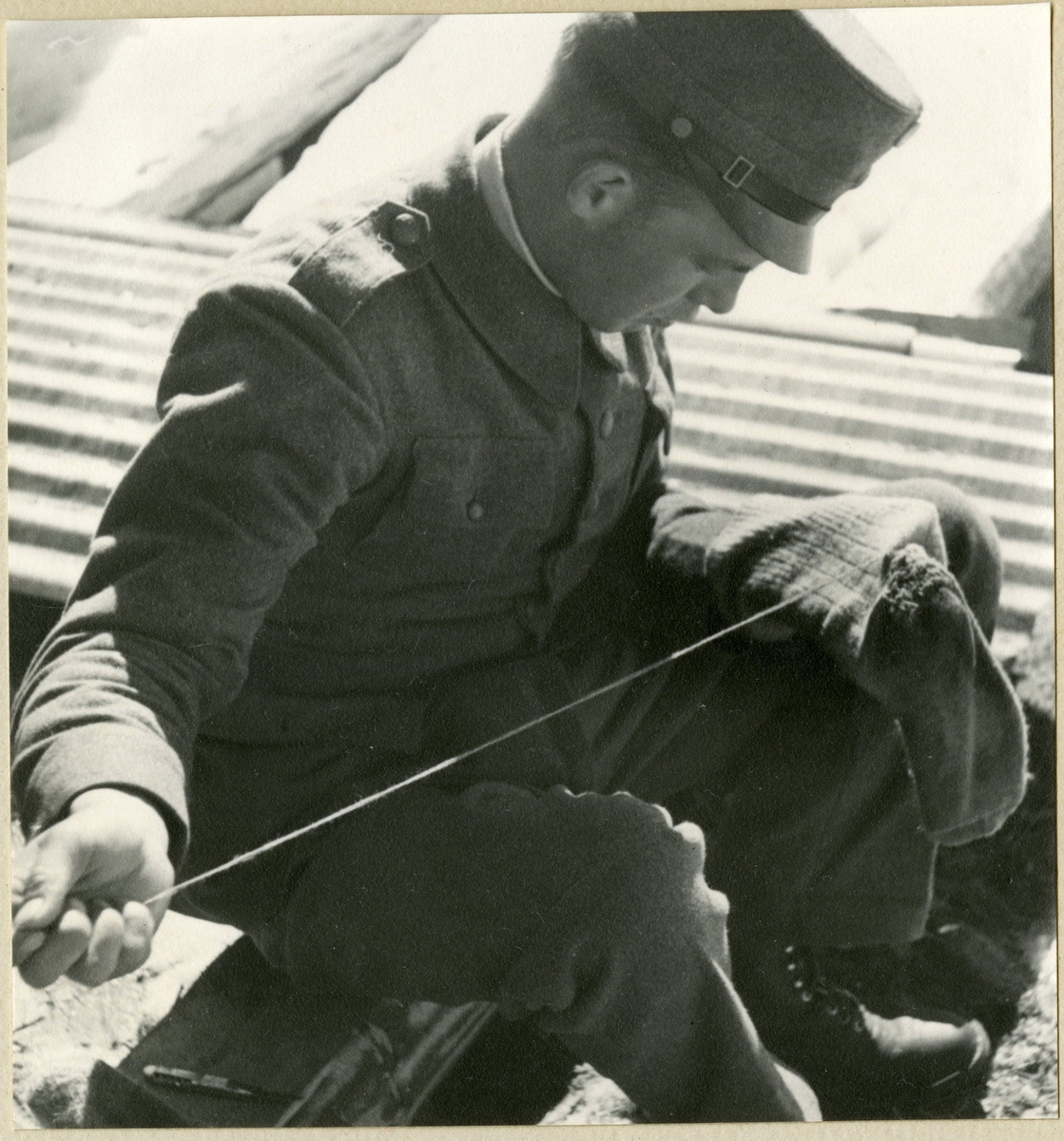 Titel: Värnpliktig lagar strumpor.