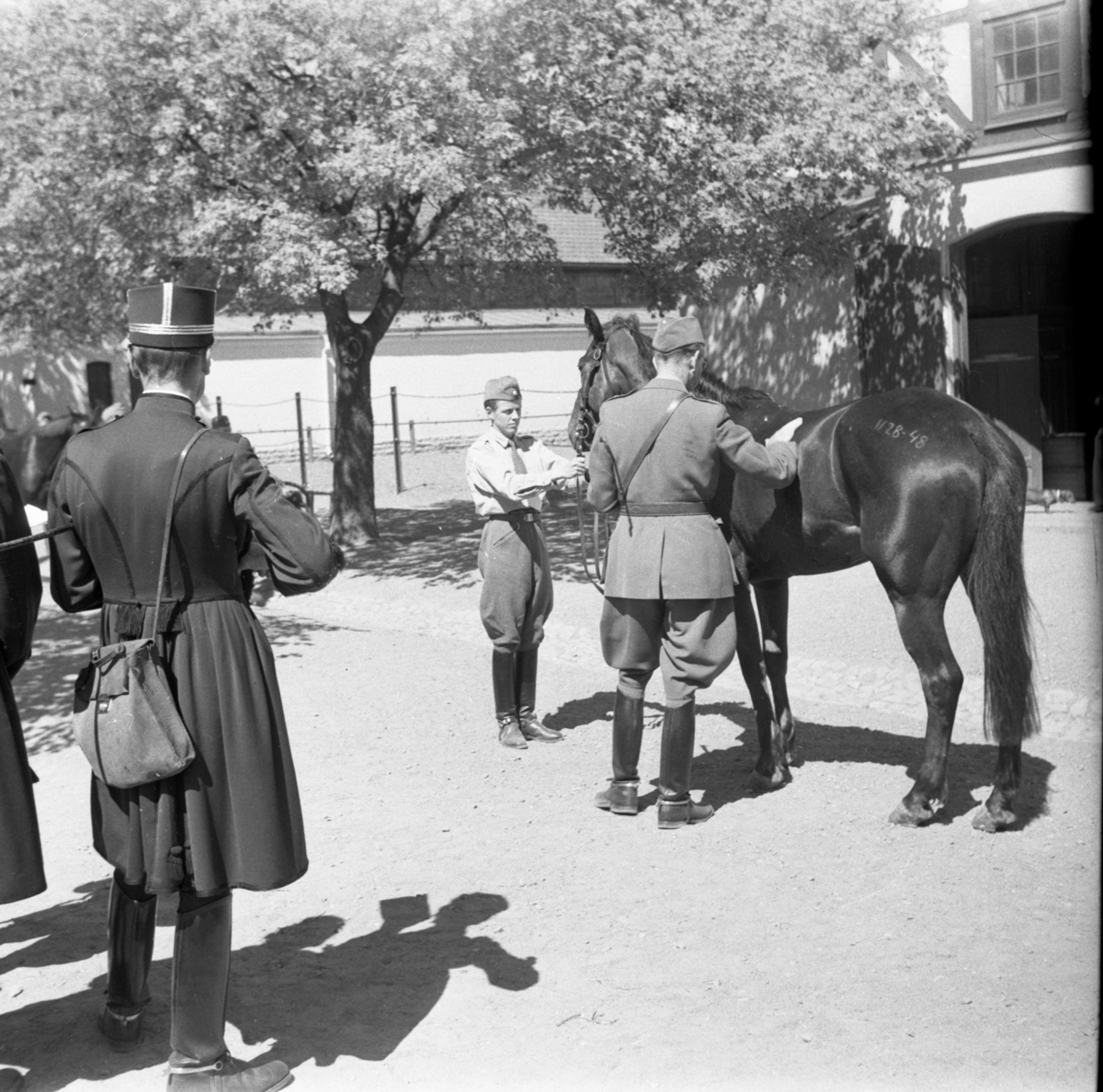En officerare med sin häst. Värnplikt vid Norrlands dragonregemente K4, Umeå, 1955-1956.