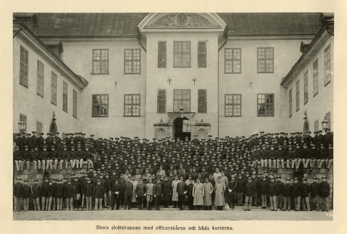 Titel: Fotoalbum innehållande bilder från Kungliga Krigsskolan i Karlberg år 1916.