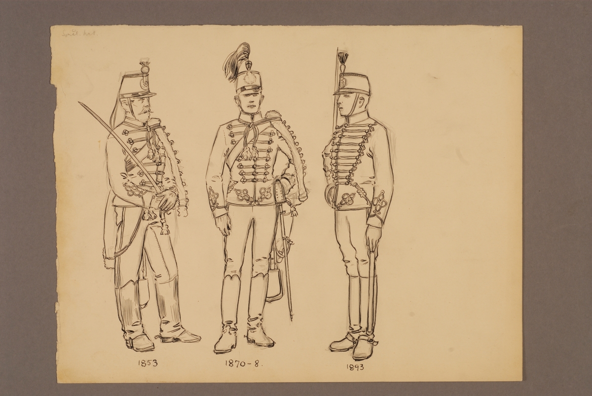 Plansch med uniform för Smålands husarregemente för åren 1853-1893, ritad av Einar von Strokirch.