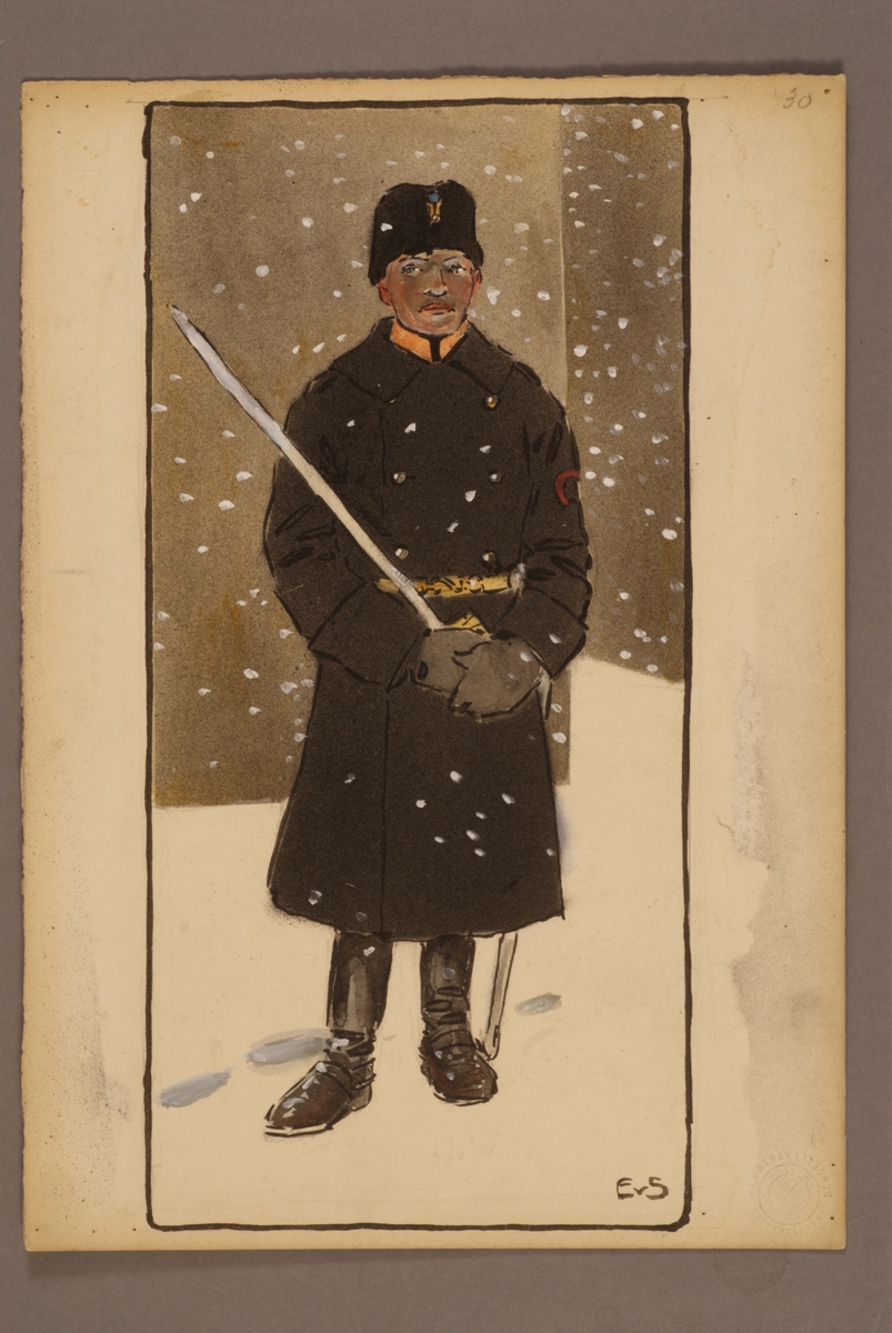 Plansch med uniform för Norrlands artilleriregemente, ritad av Einar von Strokirch.